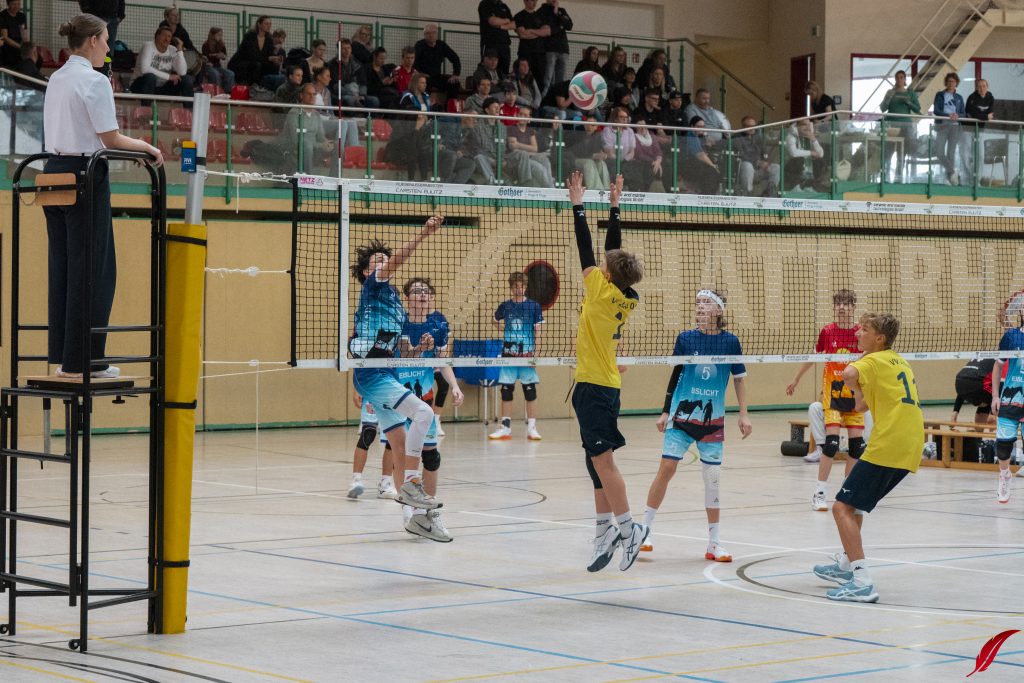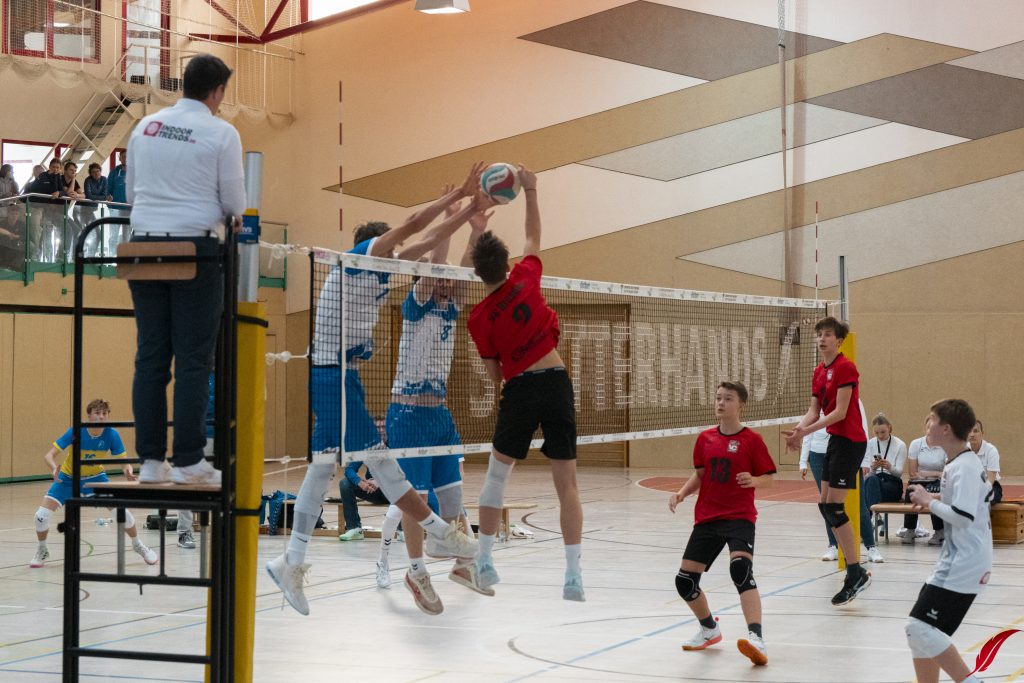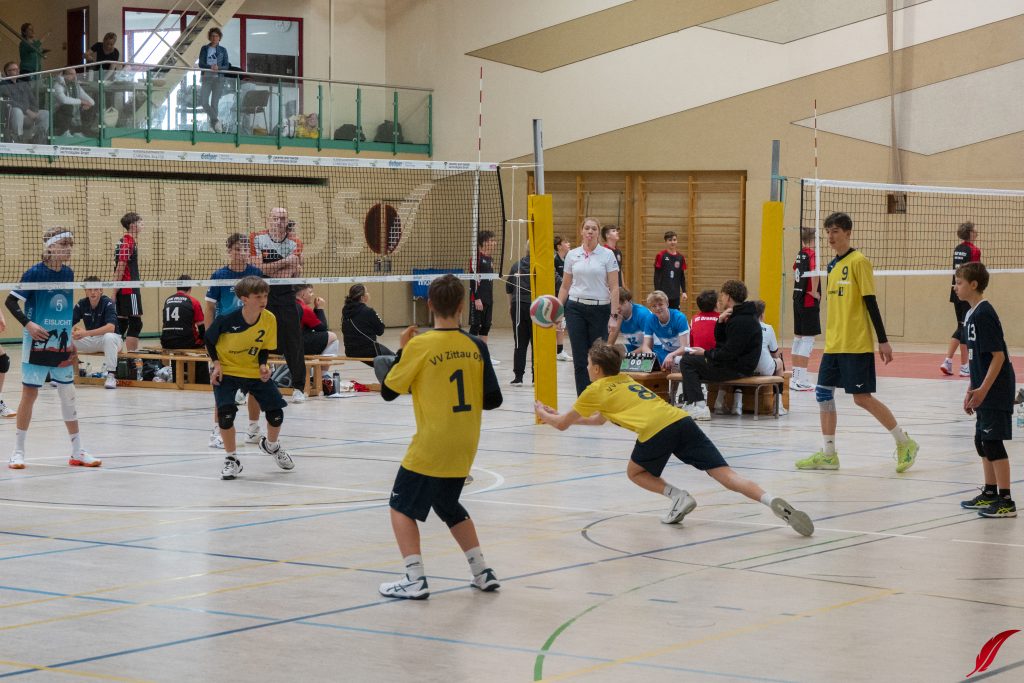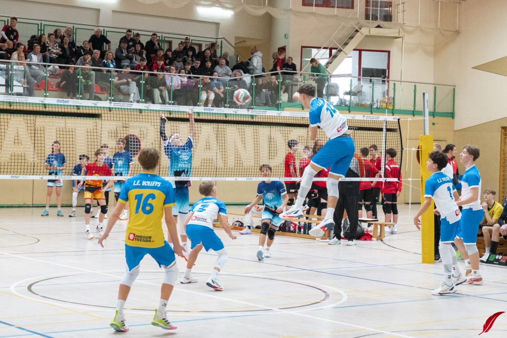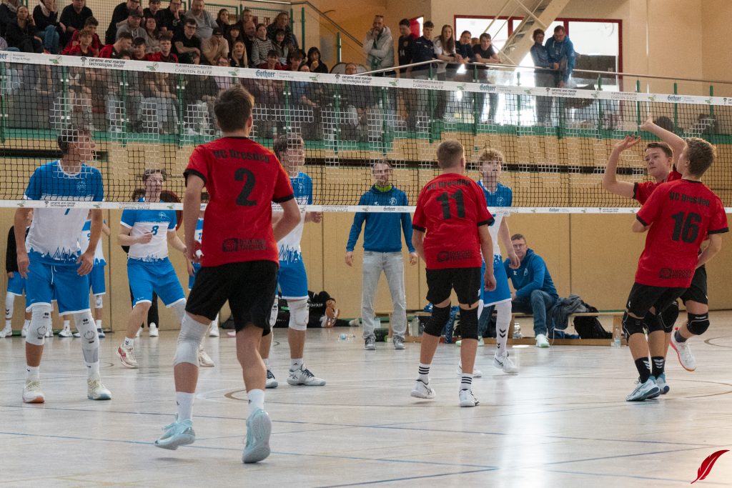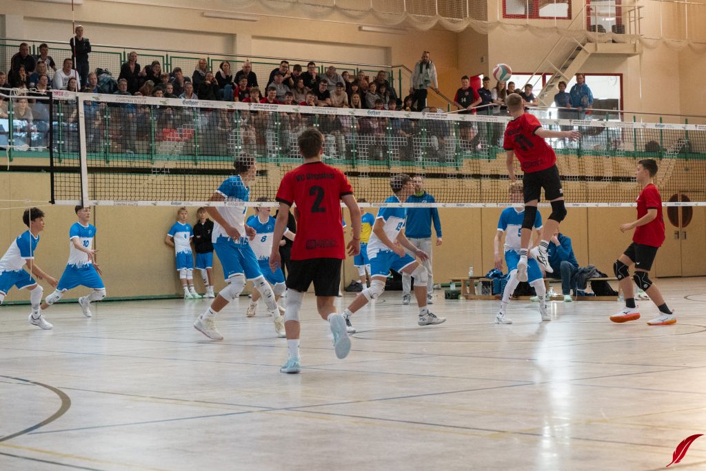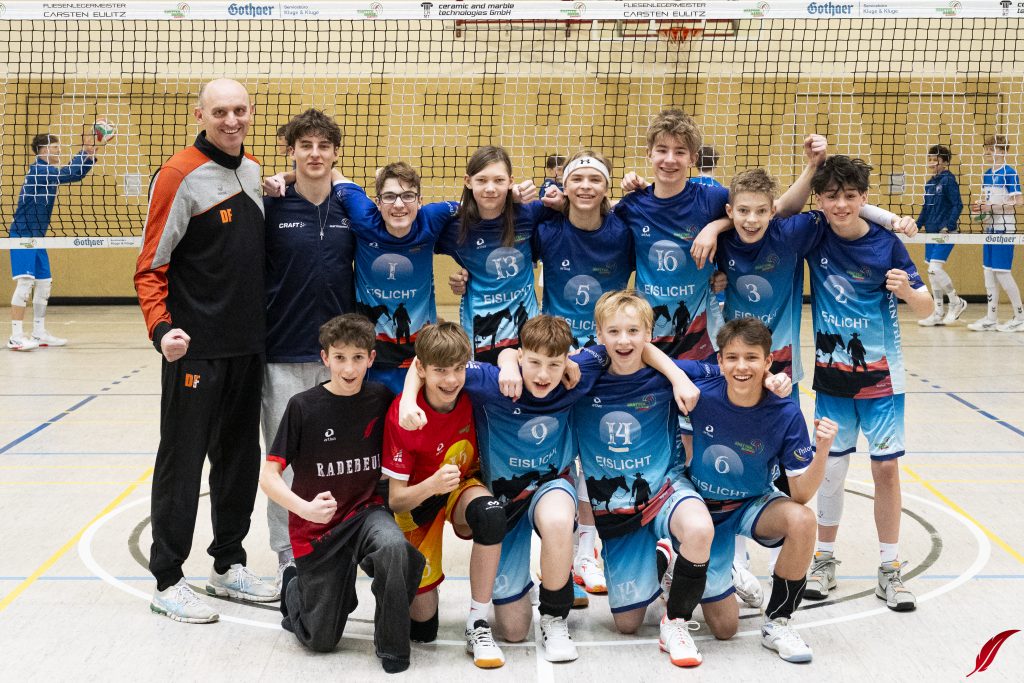 Am Sonntag fand die U16-Sachsenmeisterschaft des sechs besten Mannschaften des Freistaats in der Lößnitzhalle statt. Mit dabei: Unsere Bezirksmeister. Außerdem war mit den L.E. Volleys auch der amtierende Deutsche Meister in der Altersklasse zu Gast. Gleich zum Auftakt mussten die Jungs von Coach Dejan gegen diesen Topgegner ran und zeigten eine gute Leistung, auch wenn es am Ende nur zu ein paar kleinen Punkten reichte. In ihrem zweiten Spiel der Vorrunde ging es gegen den VV Zittau um den Einzug ins Halbfinale. Die Jungs machten es spannend, gewannen aber das knappe Spiel. In den beiden folgenden Partien gegen den VC Dresden und den Chemnitzer WSV war für unsere Jungs trotz großem kämpferischen Einsatz nichts zu holen. Am Ende bleibt ein starker 4. Platz. Zum Sachsenmeister kürten sich die Leipziger Jungs im einzigen Dreisatzspiel des Tages gegen den VC Dresden.